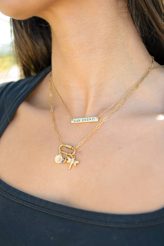 WJW - 18K Gold PVD Engravable Paperclip Charm Holder Necklace