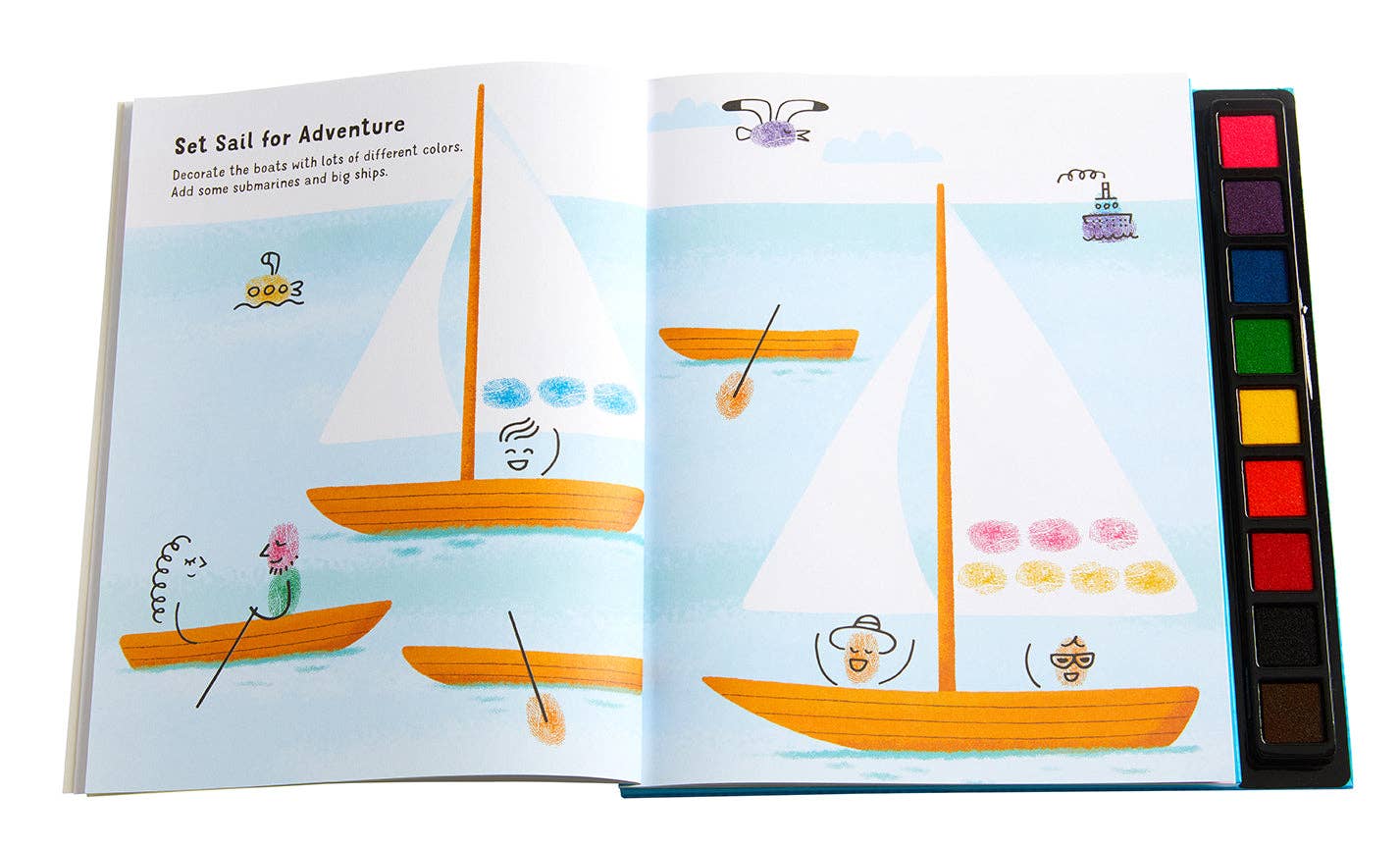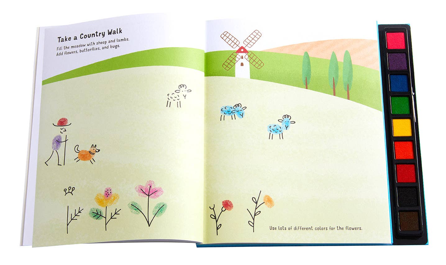 It’s a different kind of finger painting! This unique art book comes with nine ink pads in vibrant colors that invite children to explore our world by using their own fingerprints to complete the art projects inside. Turn fingerprints into imaginative characters, animals, and more. From colorful butterflies to a pile of autumn-colored leaves, the possibilities are endless with these creative projects.