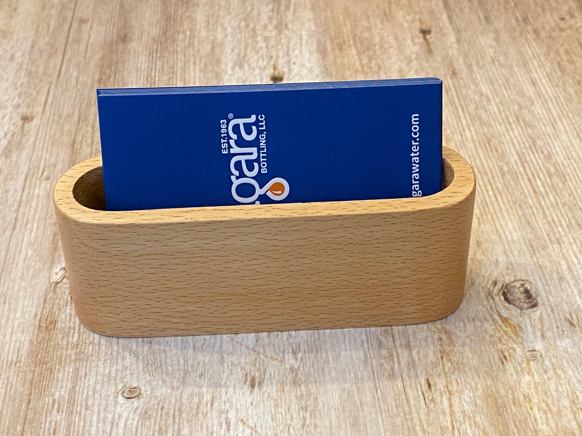 This business card holder is the perfect addition to any desk. Variation in color should be expected as with any wood.