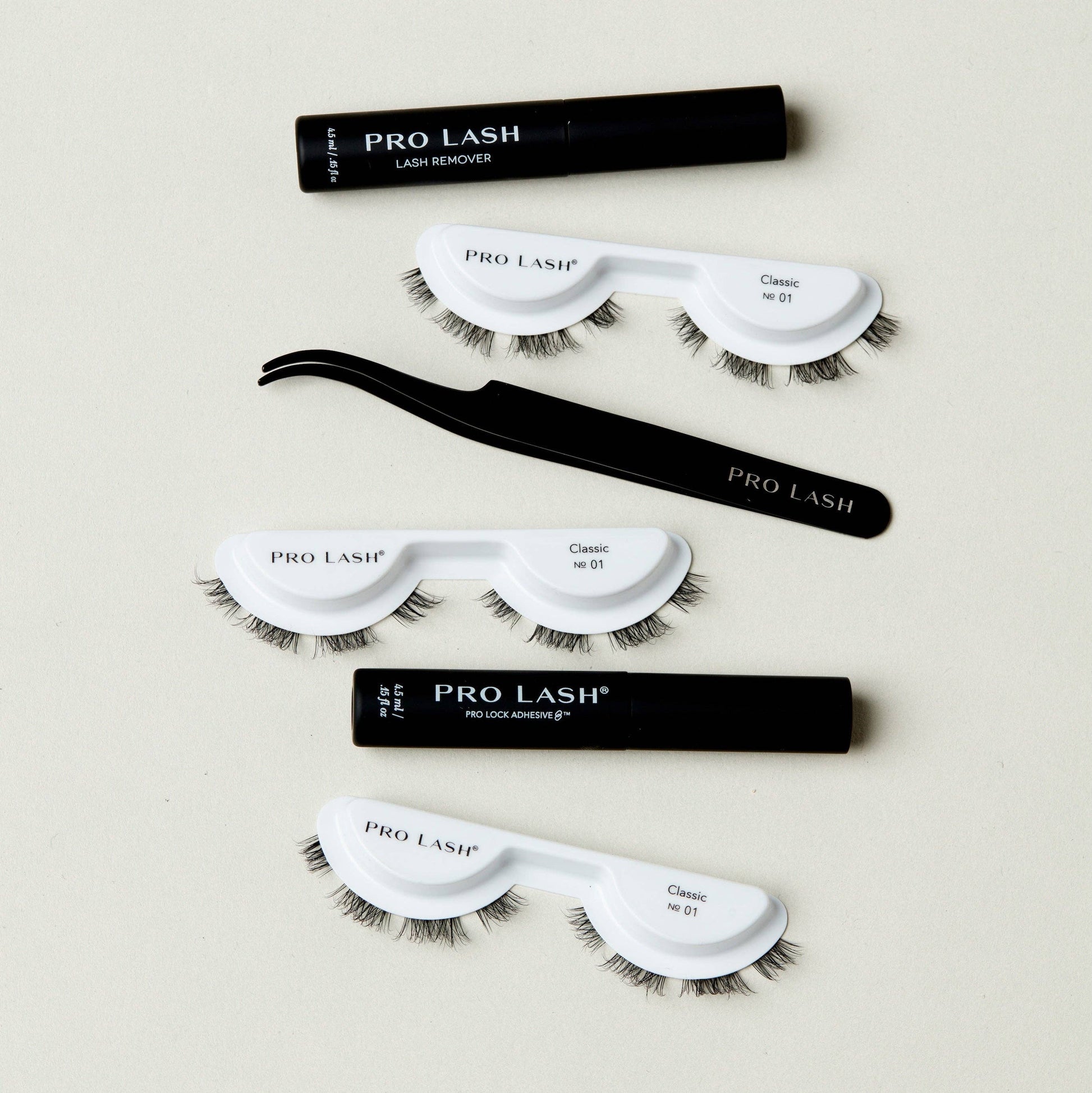The Starter Kit includes everything you need to apply and remove your lashes in minutes: 3 sets of lashes, adhesive, remover, and tweezers.