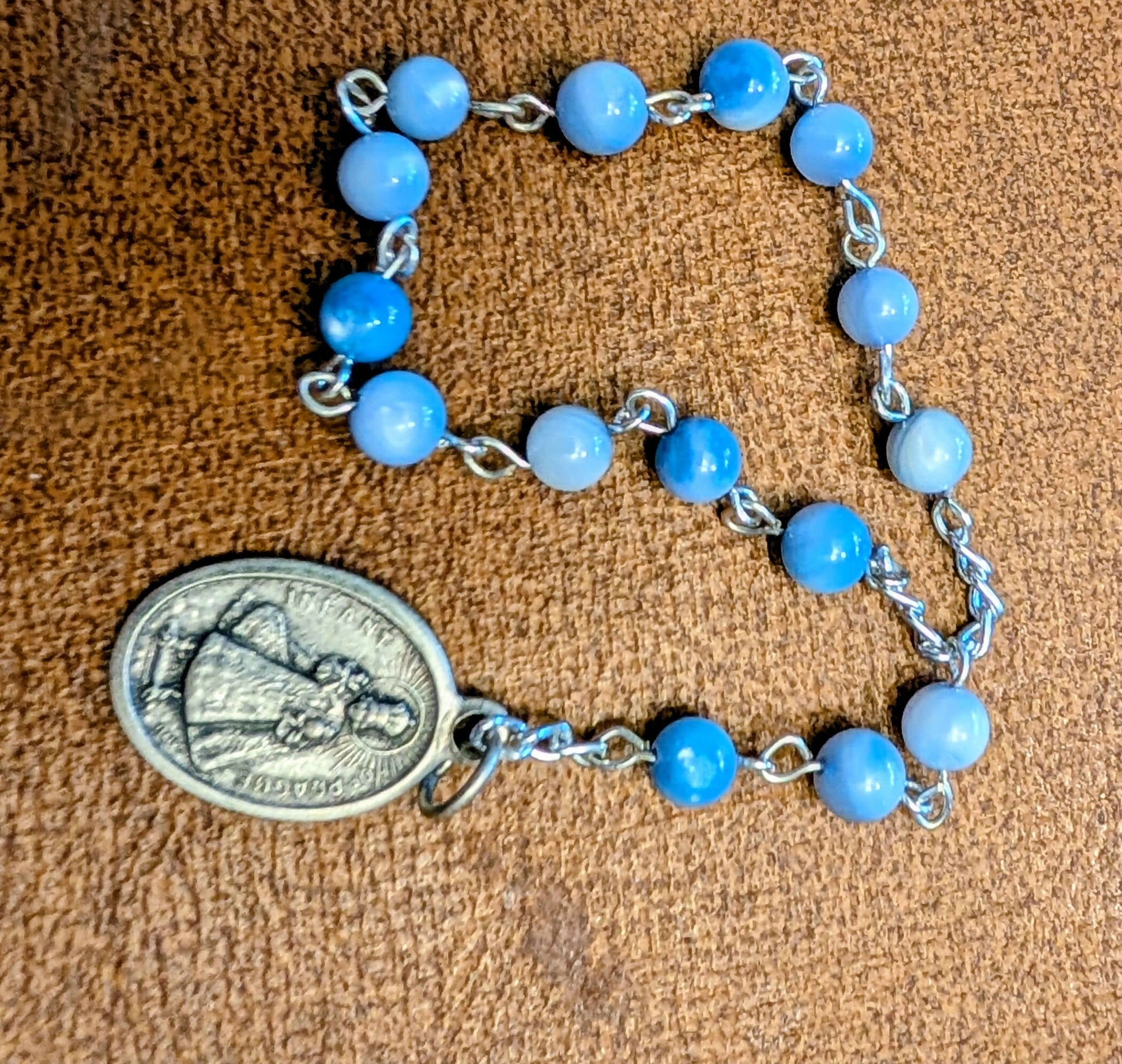 Stone beads with metal Infant Jesus of Prague medal