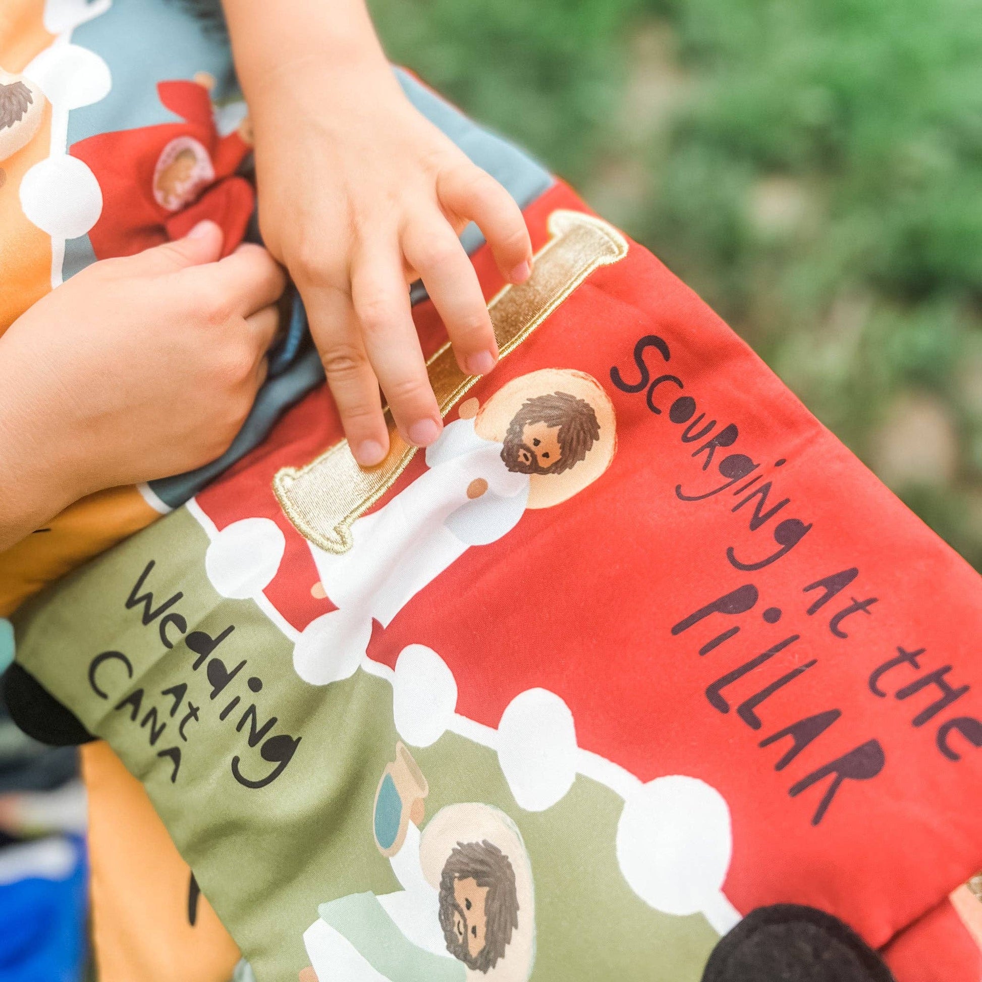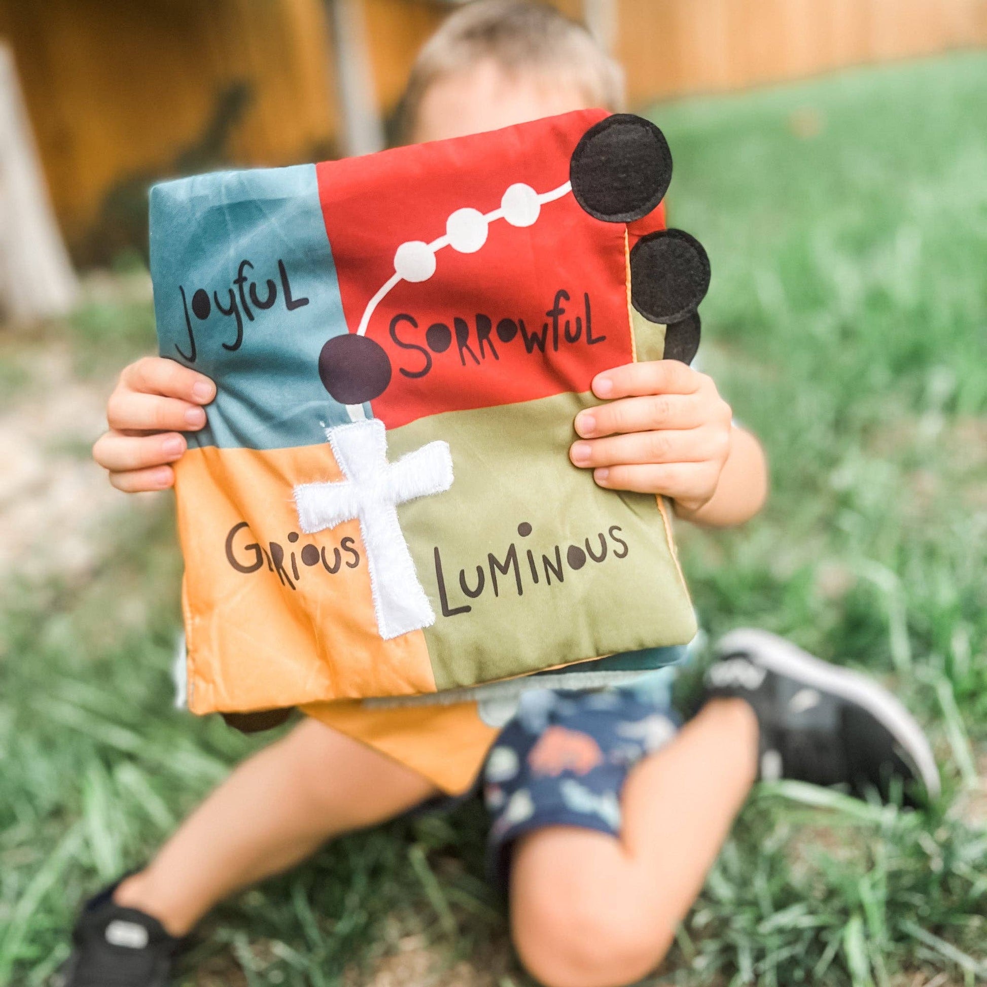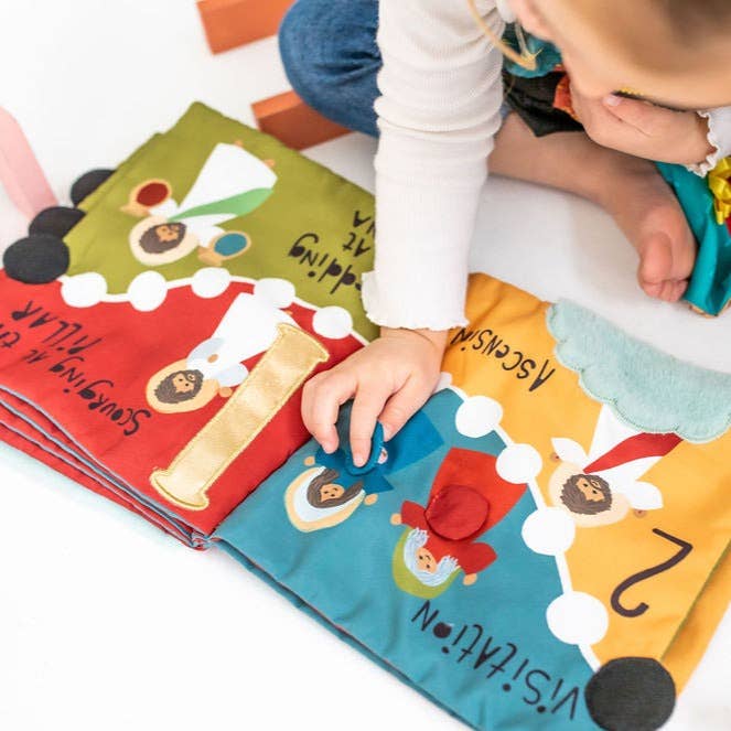 Our brand new quiet book brings the rosary to life for babies and toddlers. With each mystery of the rosary represented, your child will learn the beauty of each decade through play. With fun drawings and interactive, sensory components on each page, the decades are brought to life in a faith based, entertaining way.