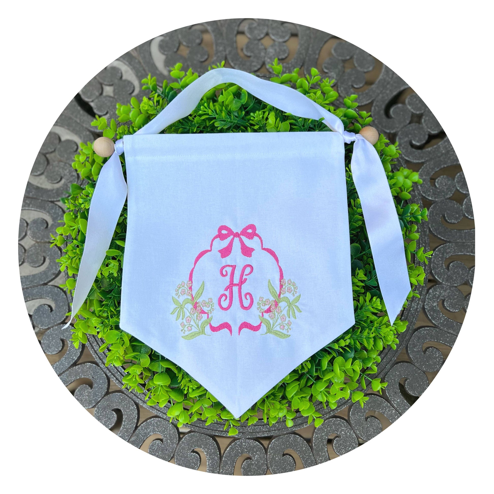 Banner sold with 12 inch wooden dowel and 1 1/2 inch wide satin ribbon!