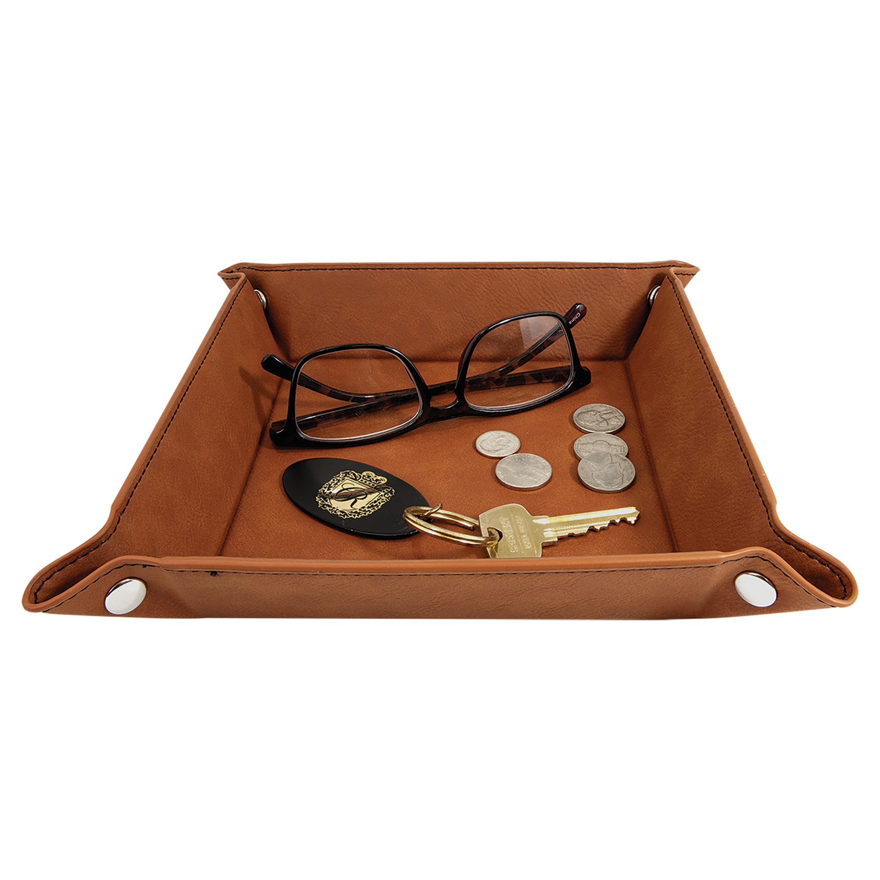 Keep essentials stylishly organized with our 6" x 6" Custom Laser Engraved Leatherette Snap Tray—a sleek and functional addition to any space. The richly textured, water-resistant material is durable, easy to clean, and designed for daily use.